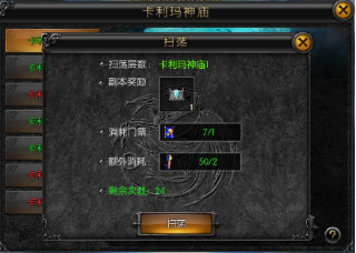 通关后可解领对应层数的扫荡功能,在消耗失落的地图的基础上,额外消耗卡利玛秘钥(钻石商城购买)即可快速扫荡,并获得Boss昆顿的掉落奖励。